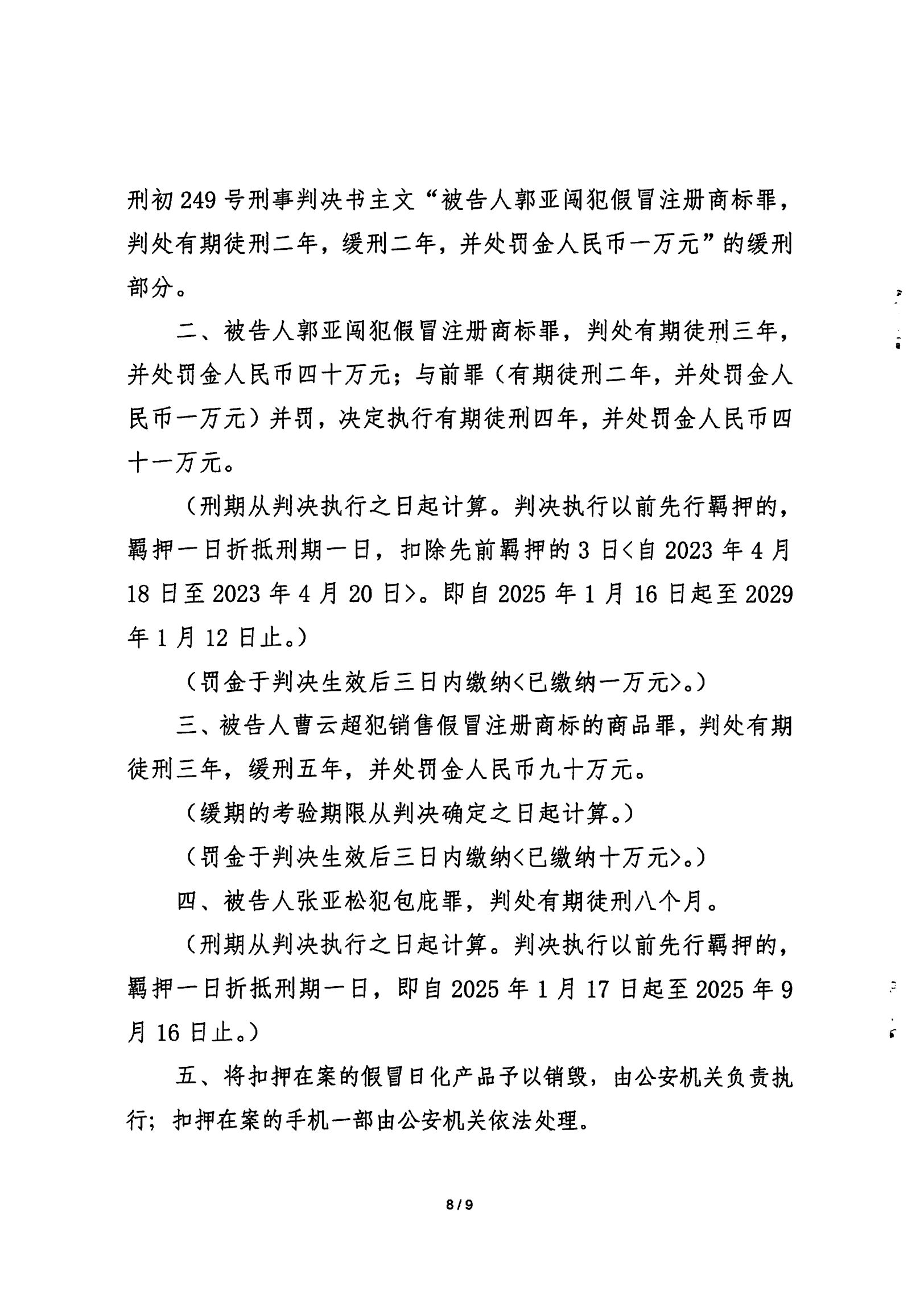 关于销售 涉嫌销售假冒 我司 注册商标的商品 刑事判决书