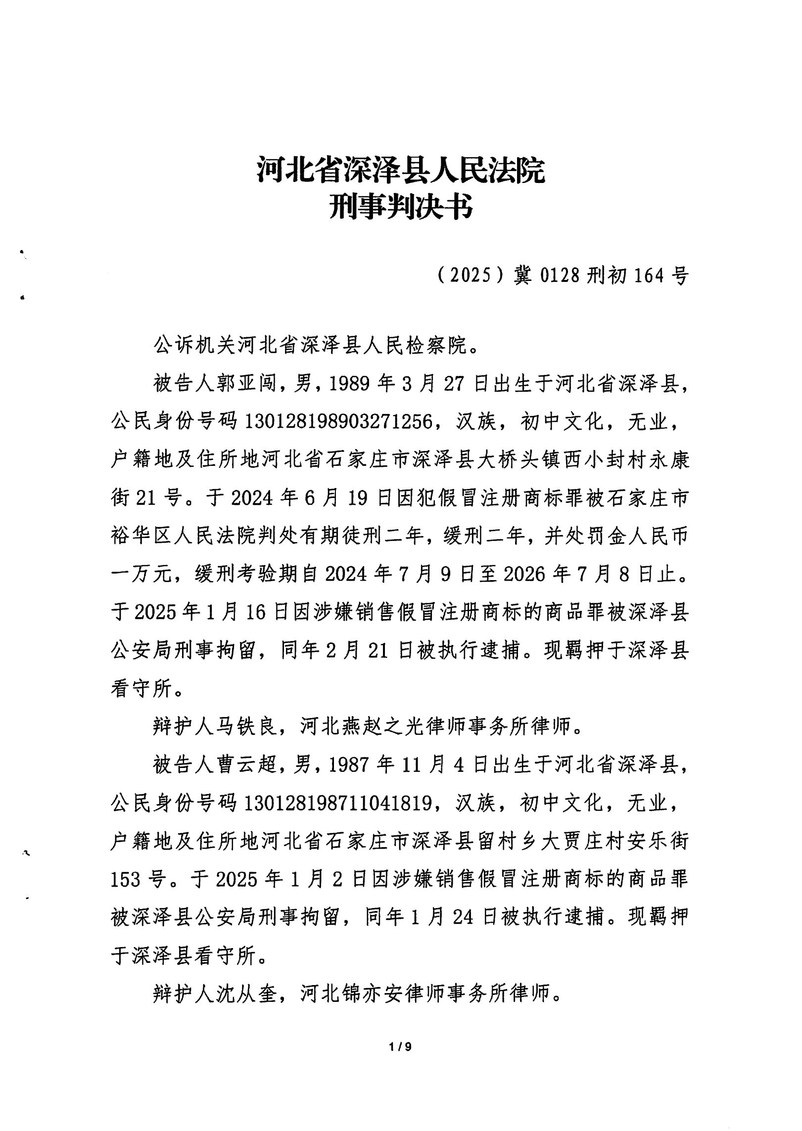 关于销售 涉嫌销售假冒 我司 注册商标的商品 刑事判决书